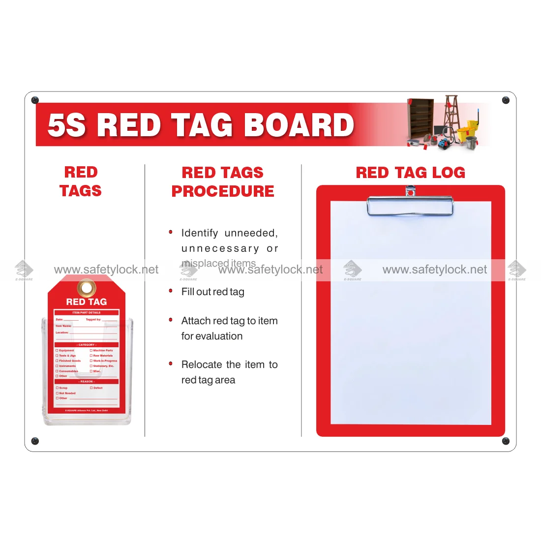 5S Red Tag Board with Document Clip