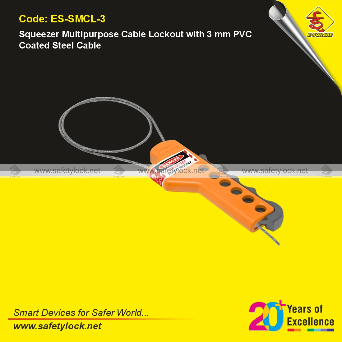 - Squeezer Multipurpose Cable Lockout with 3 mm PVC Coated Steel Cable is ideal for a variety of industrial applications, especially in small spaces where multiple lock points are necessary.